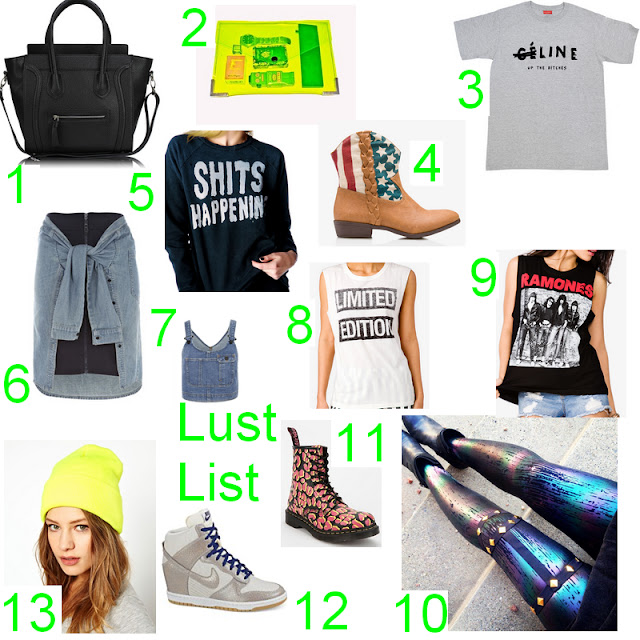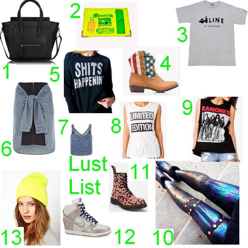 Next up is just a huge mixture of other things I've been lusting over lately... I am sure most, if not all, of these items will make their way into my beloved closet soon. I am clearly a sucker for graphic t-shirts, comfortable statement shoes and show stopping accessories.
