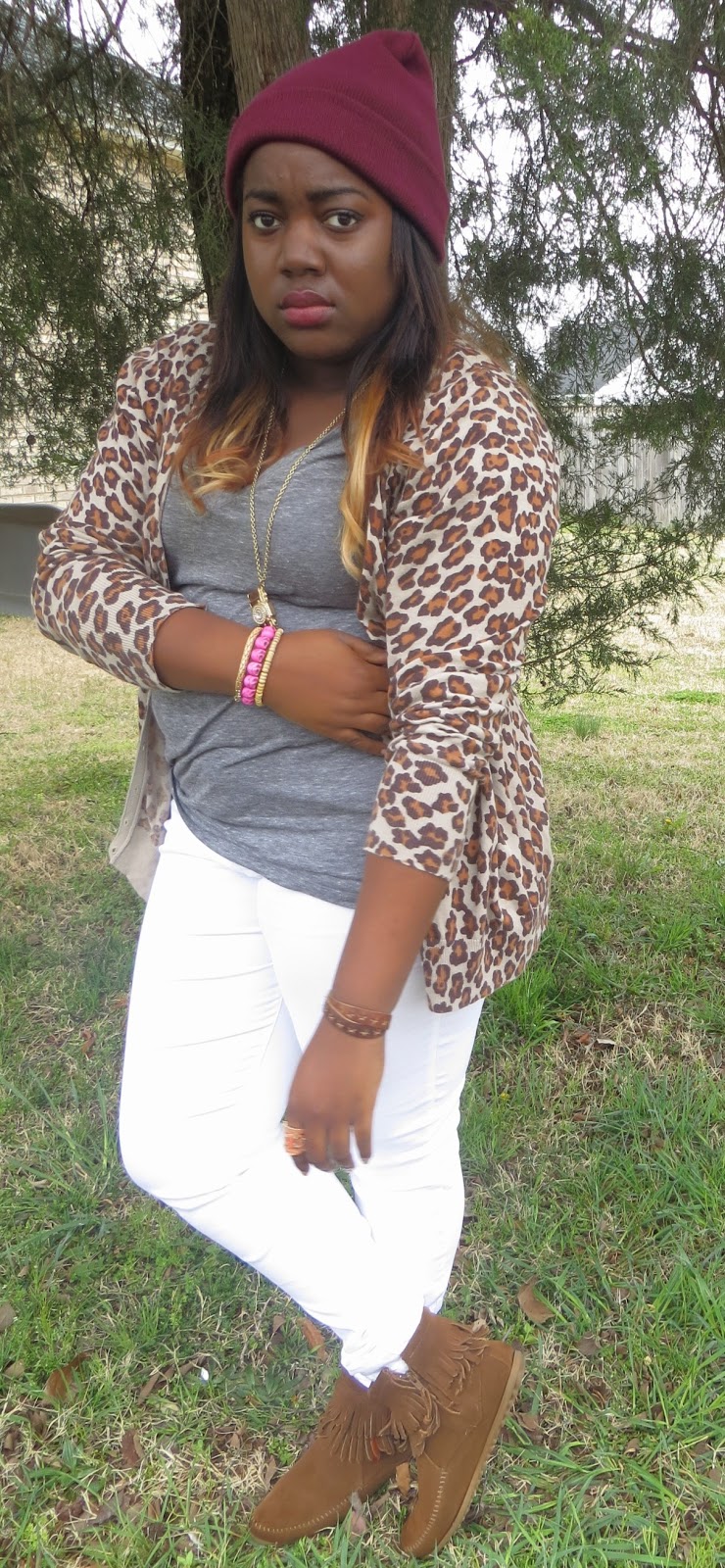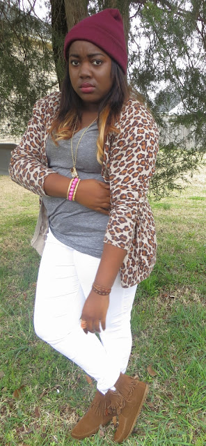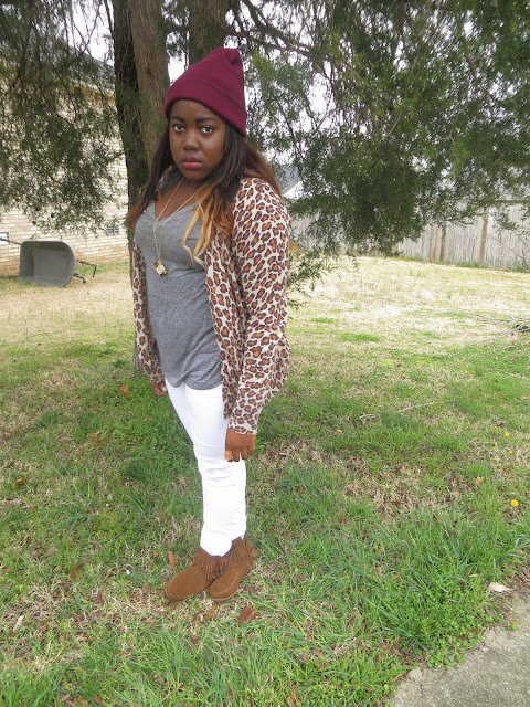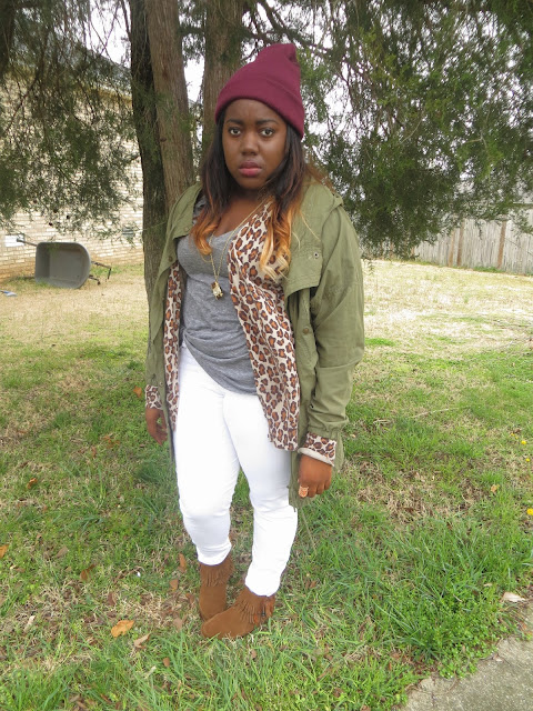 I love dressing for the spring time, I love light layers, floral prints, pastels, and bright colors. This morning I attended a Kids Spring Fashion Show at my local Nordstroms because nephew was in it. The weather was quite chilly so I wanted to keep my look fresh and neat but stay warm at the same time. I decided to pull my white jeans out then go for a pretty neutral colors on top. I ended up wearing this outfit. This outfit is my twist on smart or chic layering. This green anorak is honestly my favorite spring jacket, it's slouchy enough that I can fit just about anything underneath it.It also does this thing where it slightly slides off my shoulder and I absolutely adore it. Grey is slowly becoming my favorite neutral color, I just love the way grey can be worn with anything. I swear this heather grey v neck is one of my favorite basic shirts I own, I'm always finding ways to dress it up or down. I've been so bad at DIY'ing lately and this cheetah cardigan is a prime example. I found this cardigan at goodwill ages ago and wanted to throw some neon accents around the print to spice it up. I have yet to do so and how I'm feeling right now, I may never get to it. I have had no motivation at all to DIY anything for months now and it's quite sad. Hopefully this Spring will bring me some motivation. Lastly we have my favorite booties of probably all time, my Minnetonka double fringe booties. These booties feed my bohemian soul. Although I may be a rock 'n' roller at heart, there is a tiny piece of me that loves a life lived organically. These booties hit my leg at the perfect spot, they're also very comfortable. I think they make a statement but blend into the background as well.
