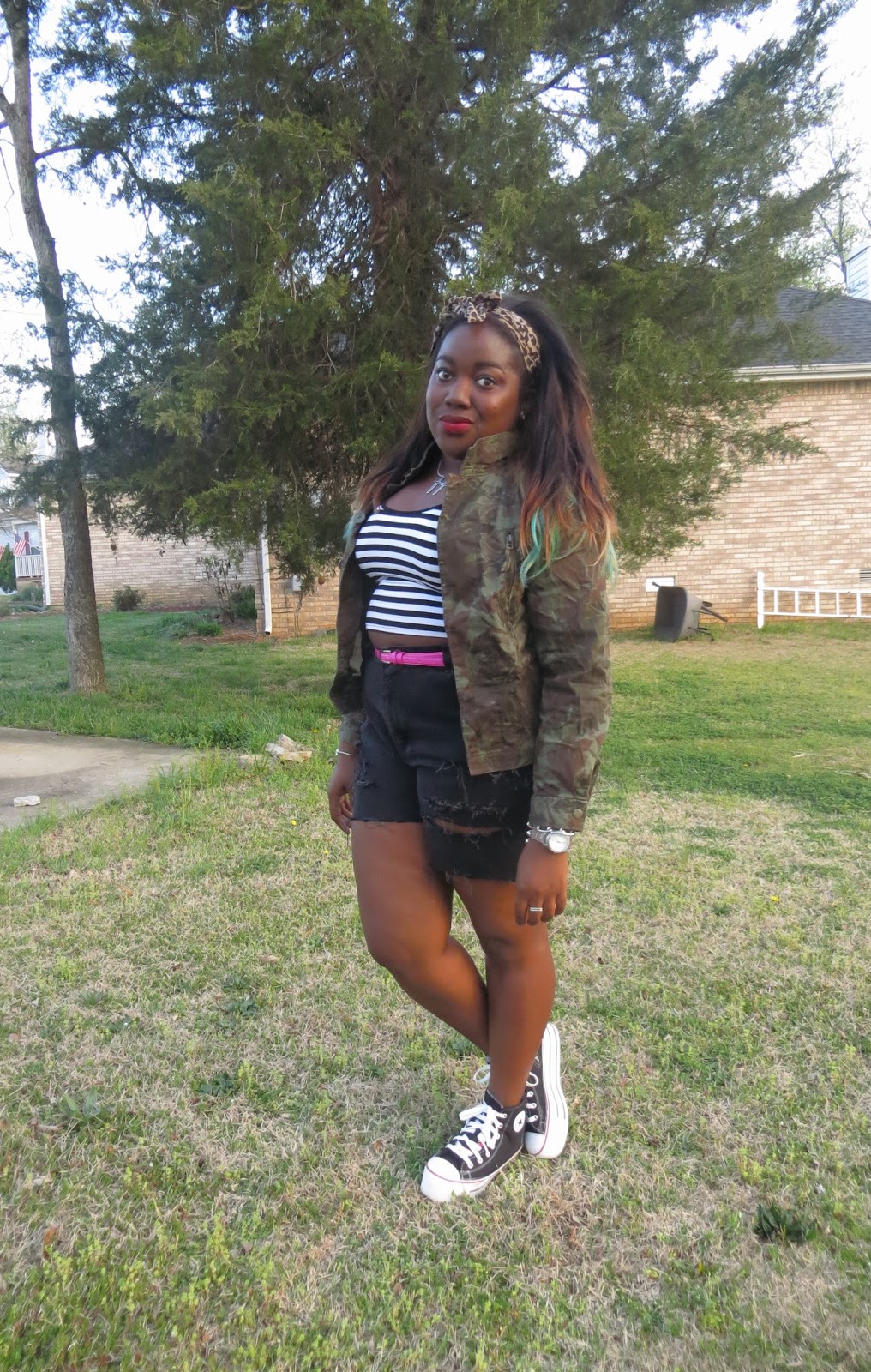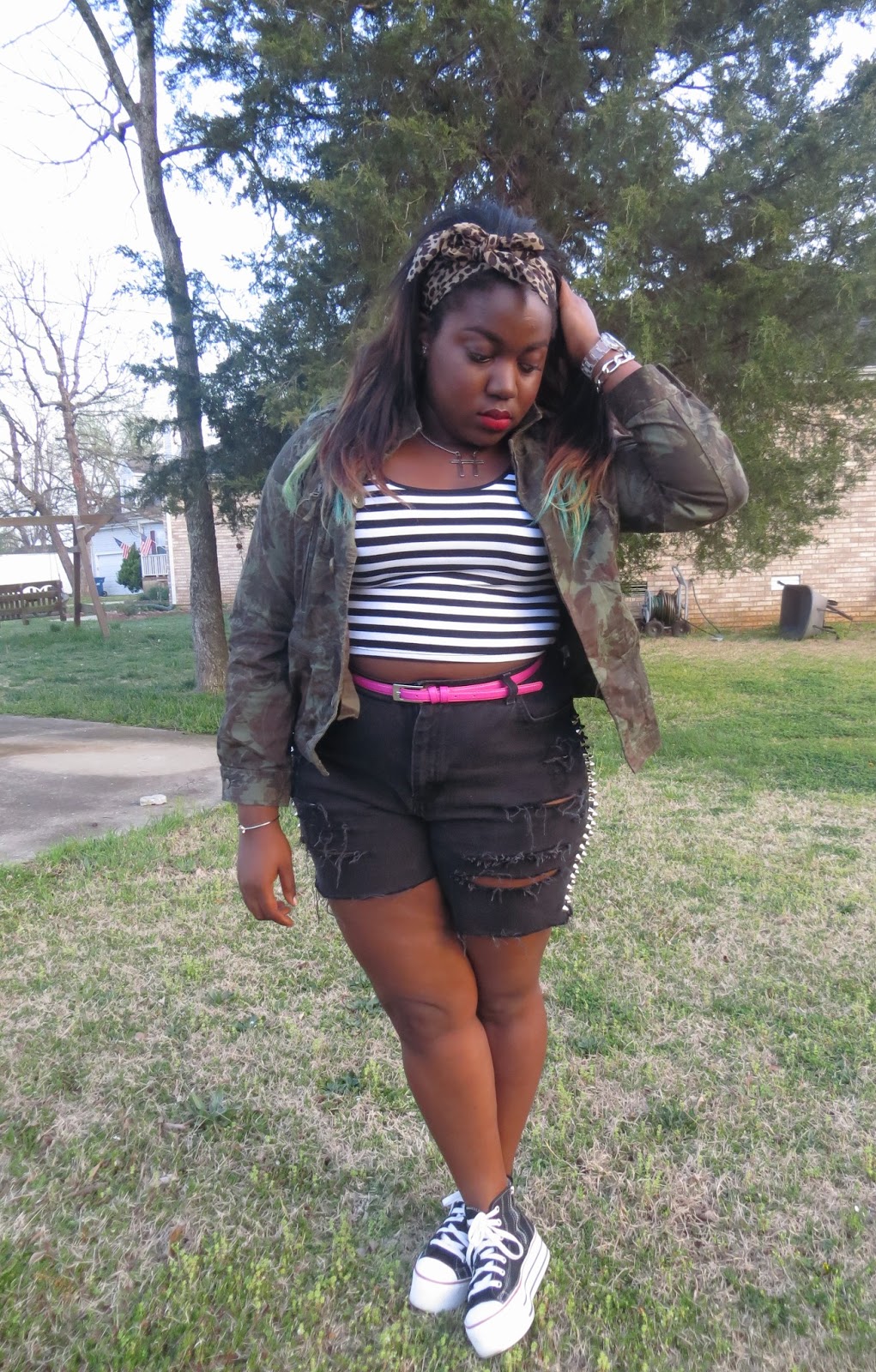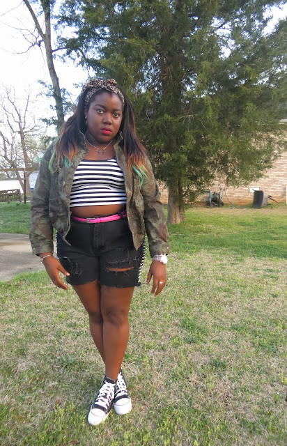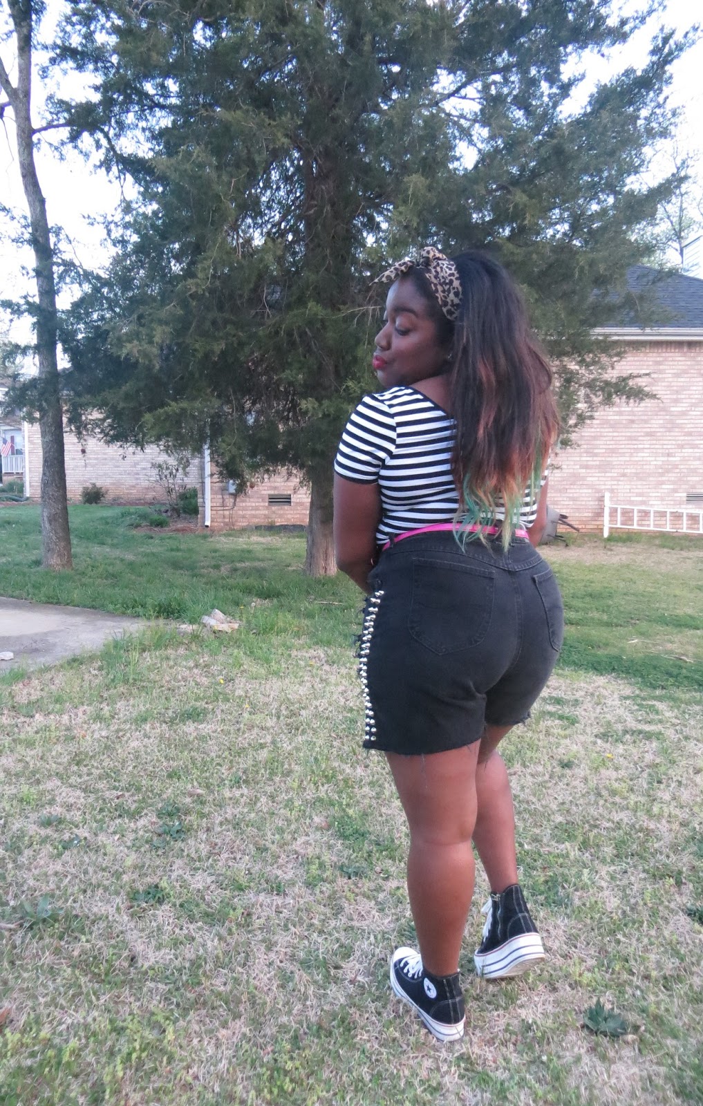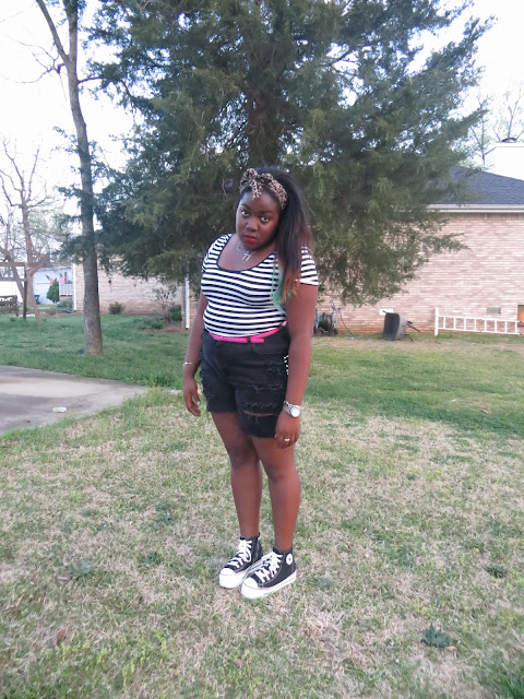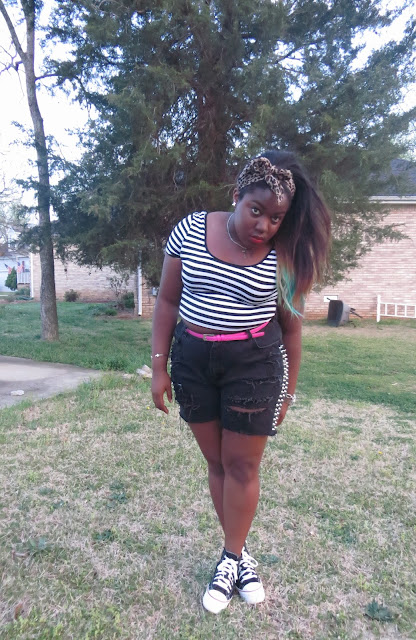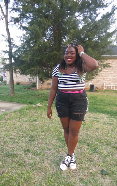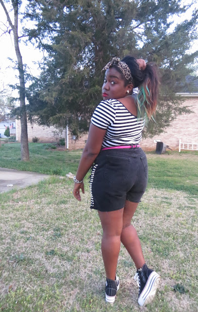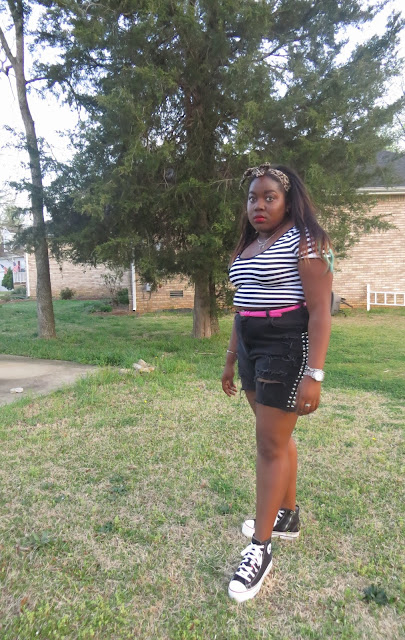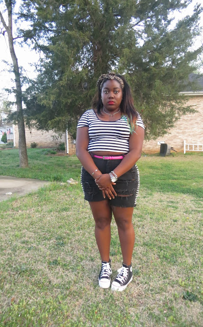 Today was a scorcher, okay well maybe not but it definitely felt more like summer than spring. I enjoyed every minute of it. It's fashion week at my school, and I decided to invite one of my adopted little sisters to attend an event with me. Tonight was the trunk show. She really enjoyed herself and is excited about being in the Fashion Merchandising program here. I love being able to talk to people who are just dipping their toe in the the ocean of fashion. Corny metaphor, huh?! Anywho I have been dying to wear these shorts for awhile now and I was just waiting for the warm weather to show up. Today these just felt right. I have been on the fence about crop tops for months now since I don't have washboard abs but I decided that I love them regardless. I have been falling in love with all the black and white outfits I've been noticing in the fashion world so I thought I'd do my variation. Honestly, If I'd wear these platform chucks every single day If I could. They are so comfortable and such a show stopper. I plan on buying a pair of double platforms in the near future.