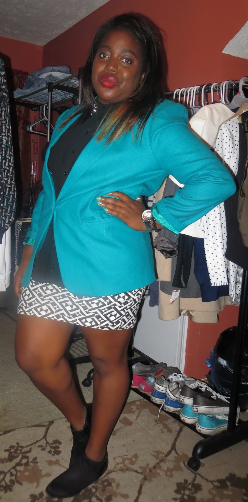 Teal Blazer- Thriftd | Jean Jacket -Thriftd | Faux Leather Jacket - New York & Co.