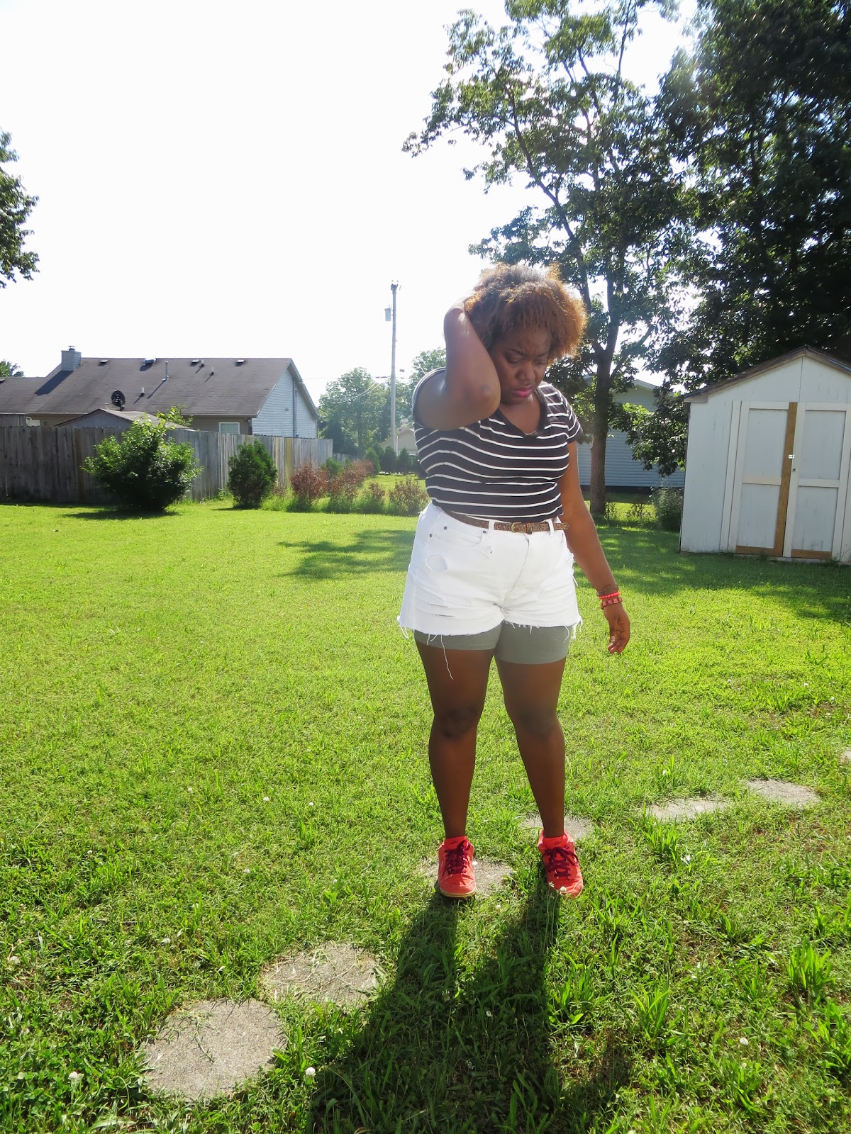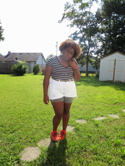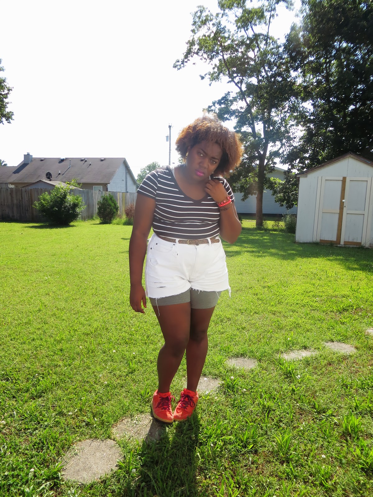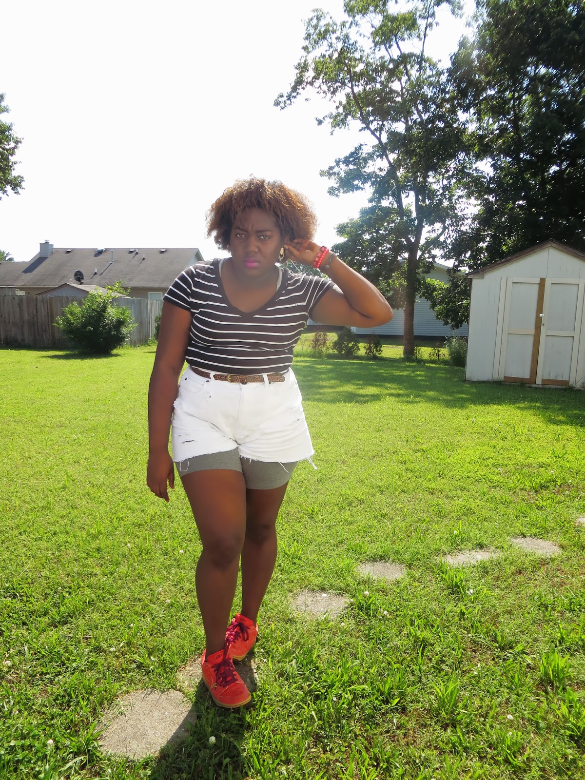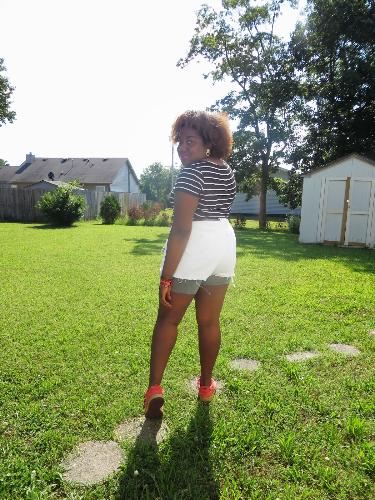 Stripped Top - Wet Seal | White Shorts - Thrift'd Diy'd