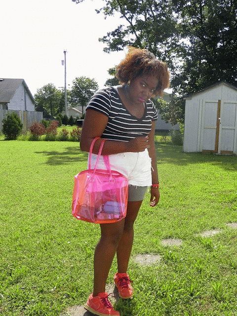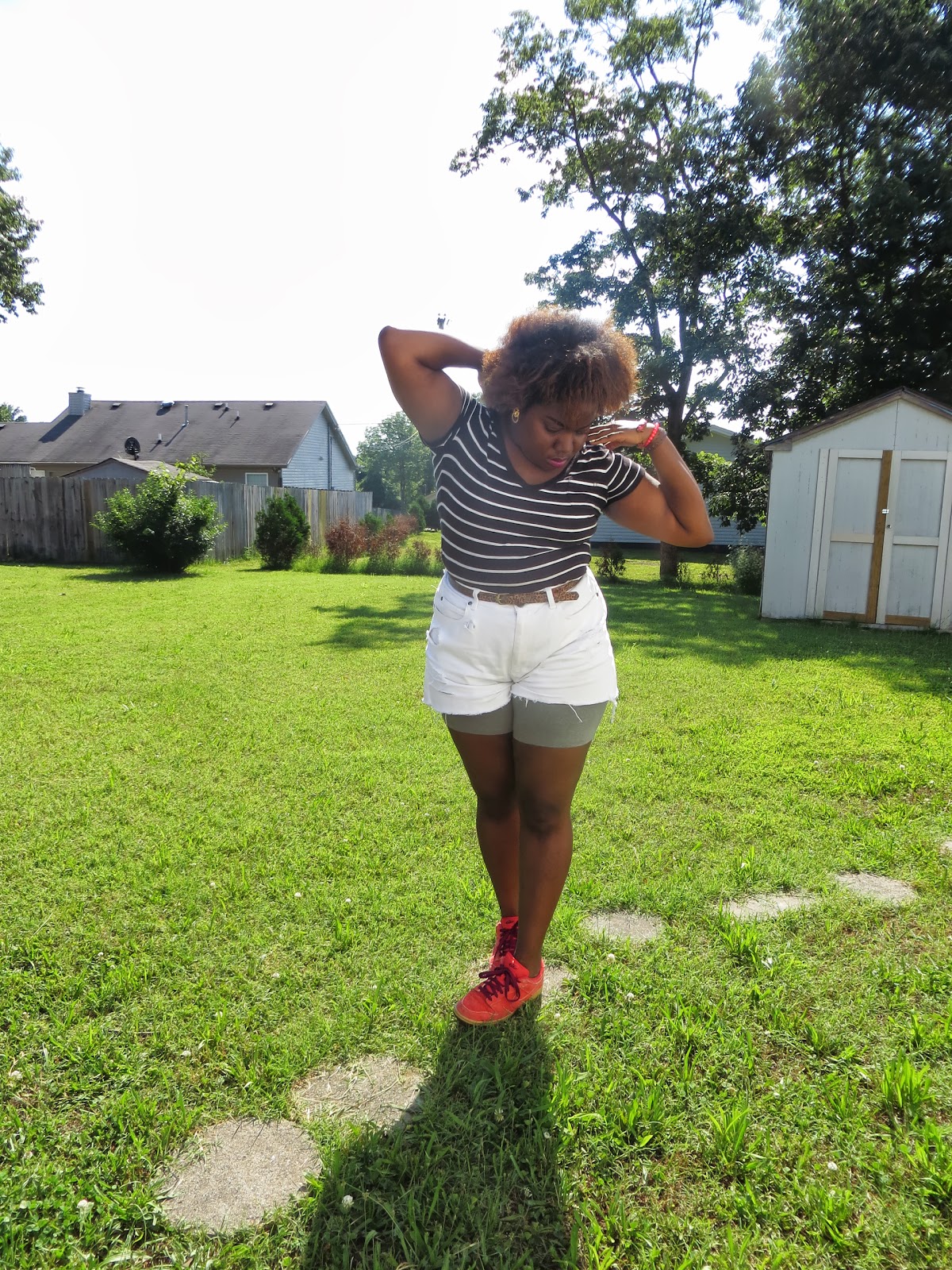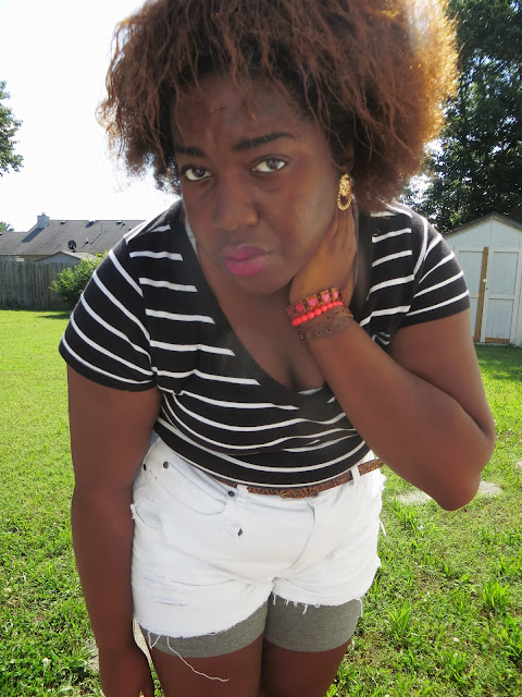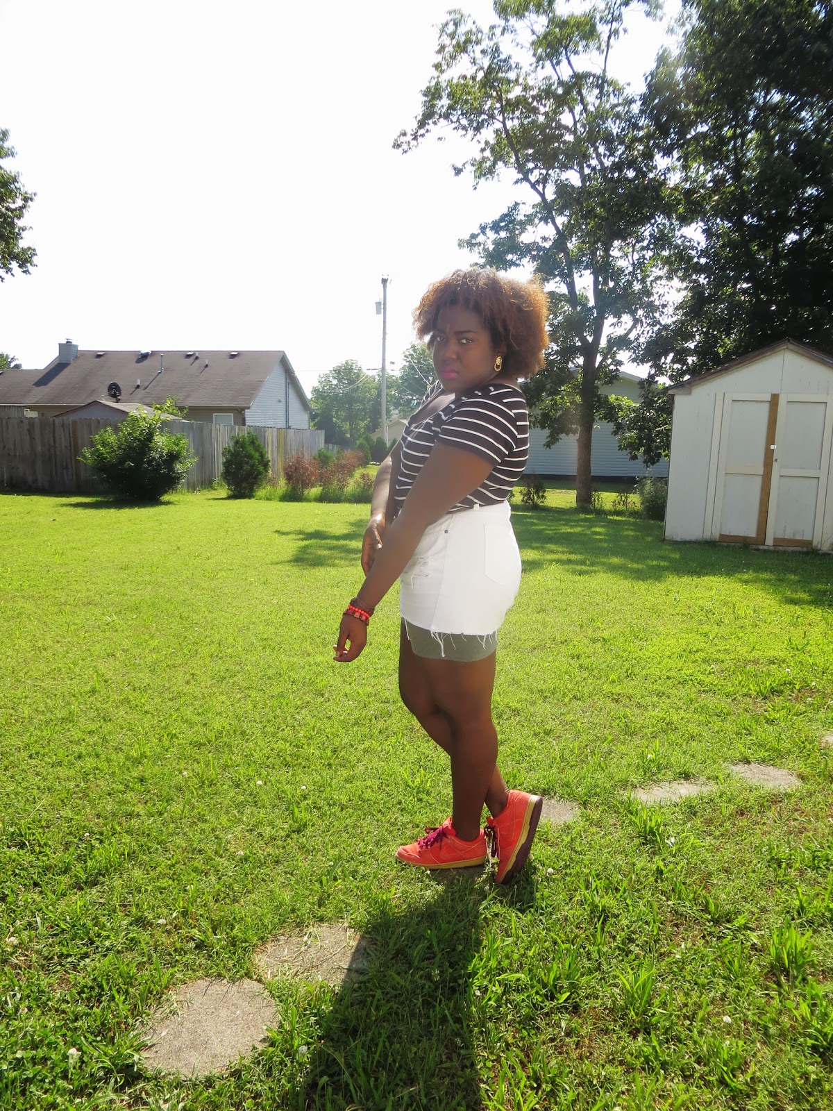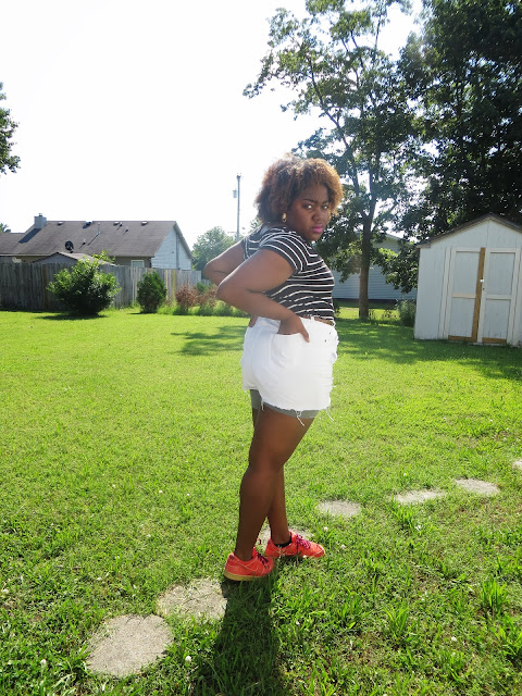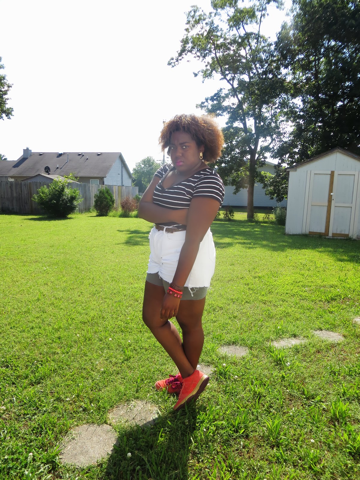 Stripped Top - Wet Seal | White Shorts - Thrift'd Diy'd