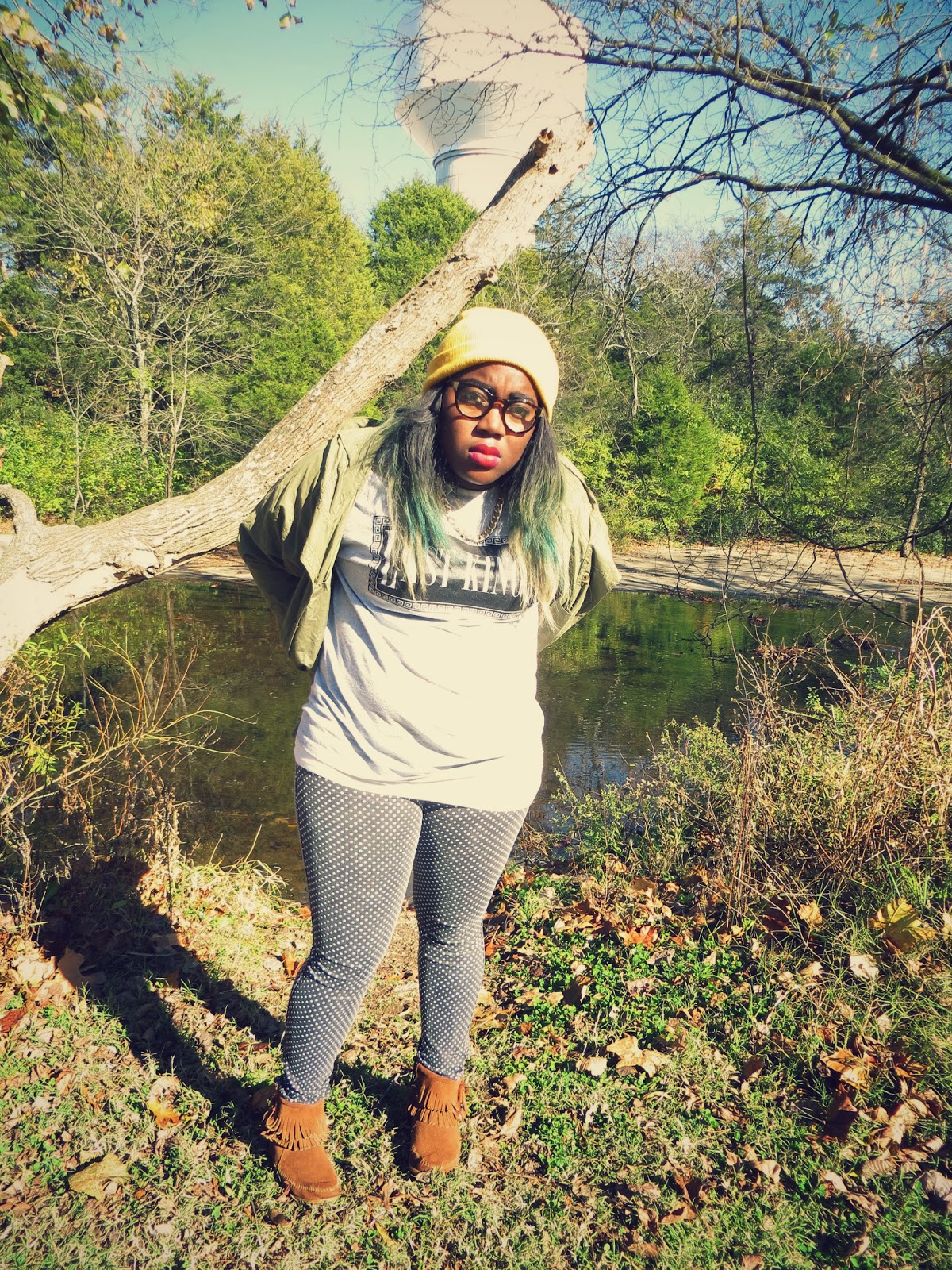 I'm definitely not one of those nature loving, park going, outdoorsy types of people but everytime I come out to the Greenway to take pictures I fall in love. It is so beautiful out here and it being fall with all the colorful leaves everywhere makes it even better. I love this weather and wearing light layers to make an outfit more interesting. I just felt really chill in today's outfit. I love how the base of this outfit is all monochromatic with black, whites and grey. Then i feel like i slapped fall on top of it with army green, brown and mustard yellow. I love how this color palette isn't normal or atypical. I adore it. I'm headed out of town this weekend so hopefully I snap a few good outfit pictures and such! I hope all you lovelies have an amazing weekend!