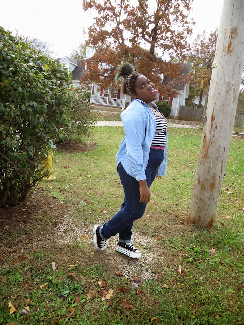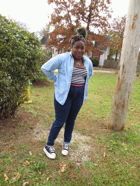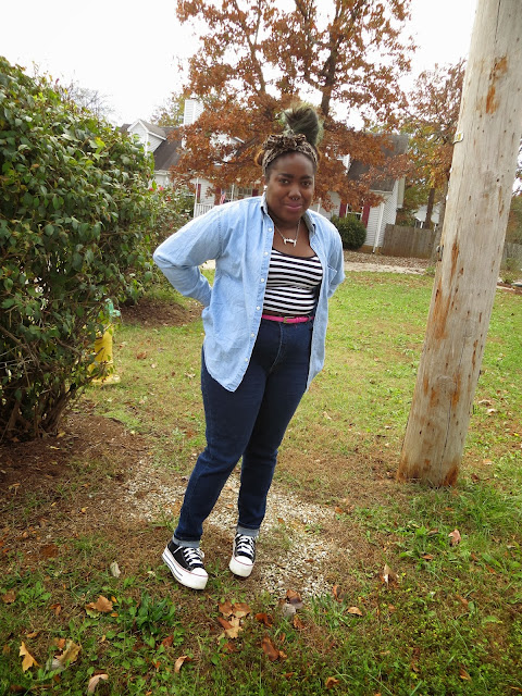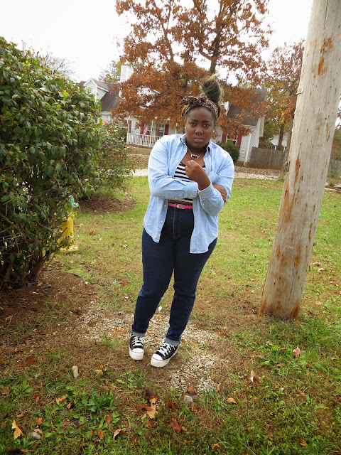 I've been wanting to rock a denim on denim for the longest but every time I tried I got a flashback of the Justin Timberlake and Britney Spears 2001 AMA matching denim ensembles and cringe. Today, I finally did denim on denim and I did it right! I absolutely love how the darkness of these jeans contrast with the light denim top. These jeans are probably one of my favorite Goodwill find yet! I have been dying to get a pair of high waisted jeans for the longest but didn't wanna pay $84 for easy jeans. So when I spotted these at Goodwill, I had a mini heart attack! They aren't as fitted as I would have liked but for $7, I can't complain. Today's outfit makes me feel like one of those artsy people who are stylish without even trying. It's simple and chic, which I love.