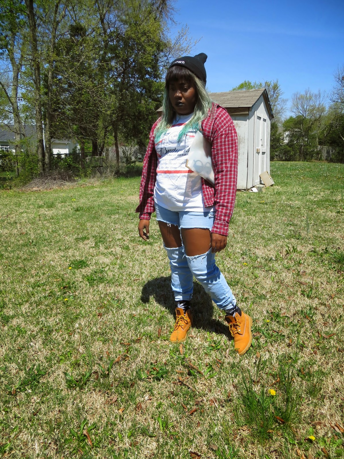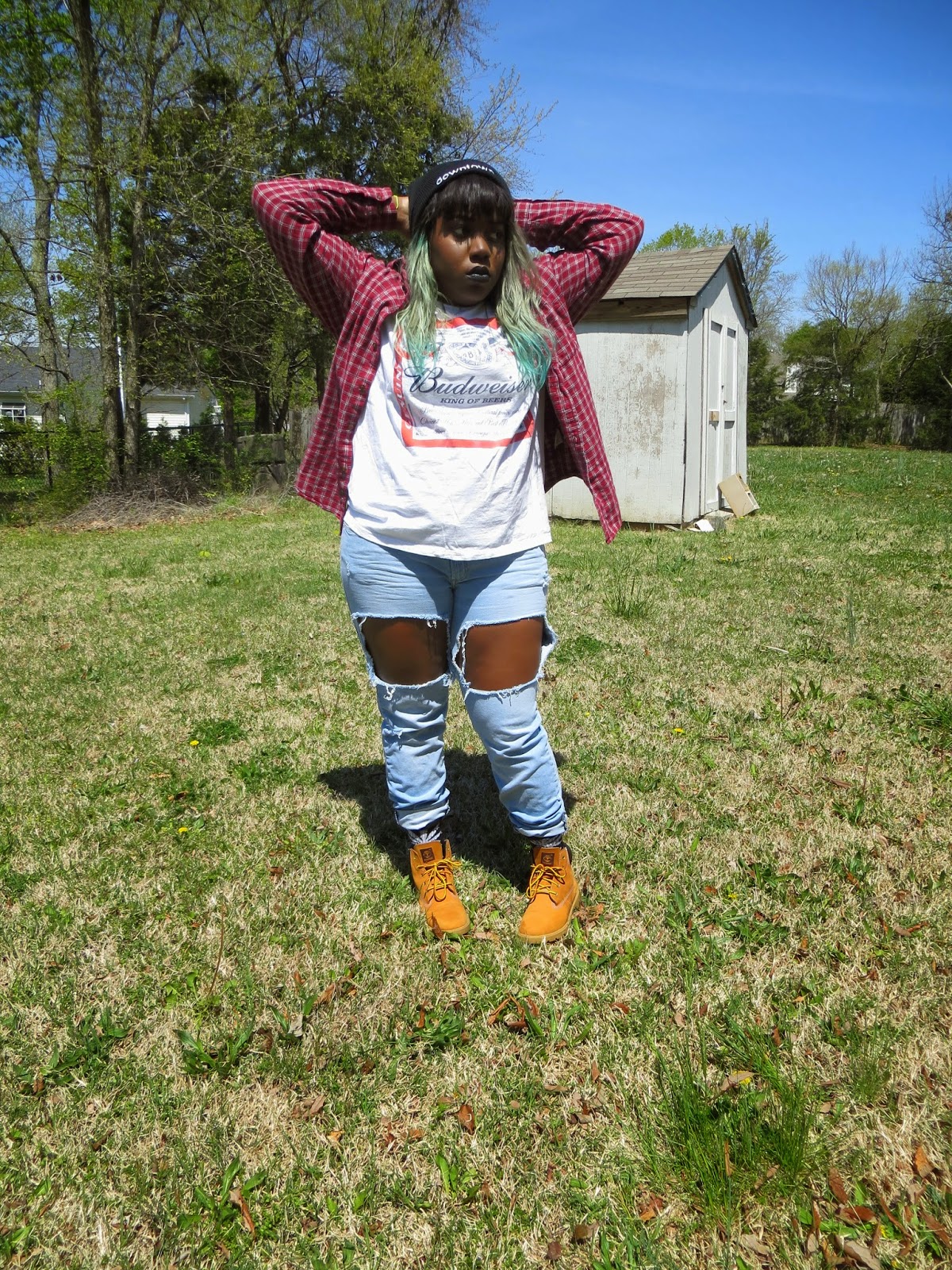 If I could pick an outfit that speaks to my inner thug, this would be it. Flannels, graphic tees and ripped up jeans is my go to look but this outfit screams don't even think about messing with me and I love it.
