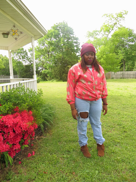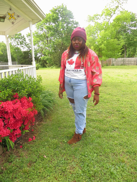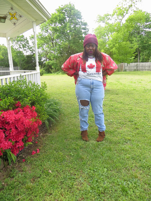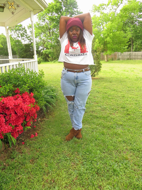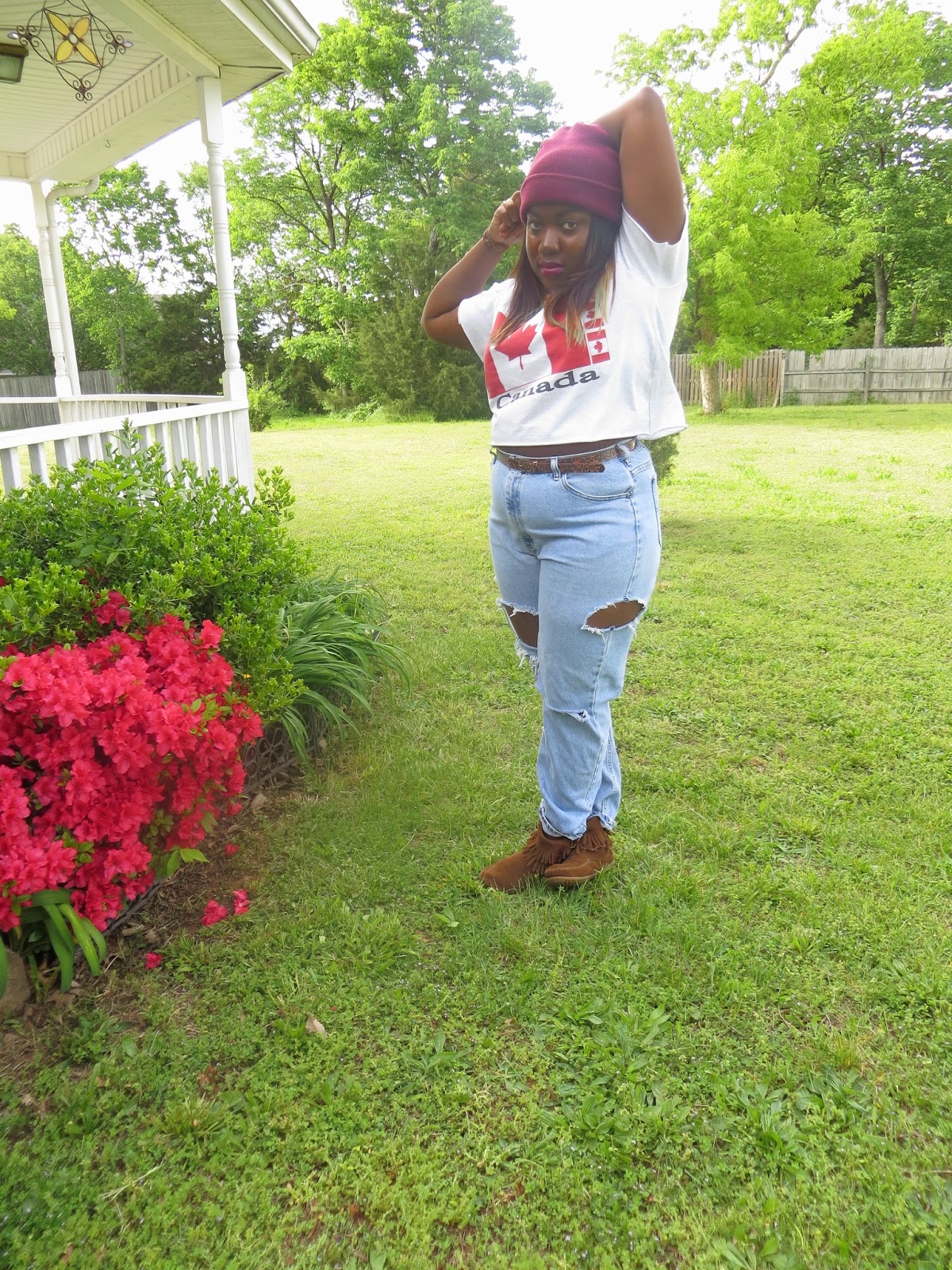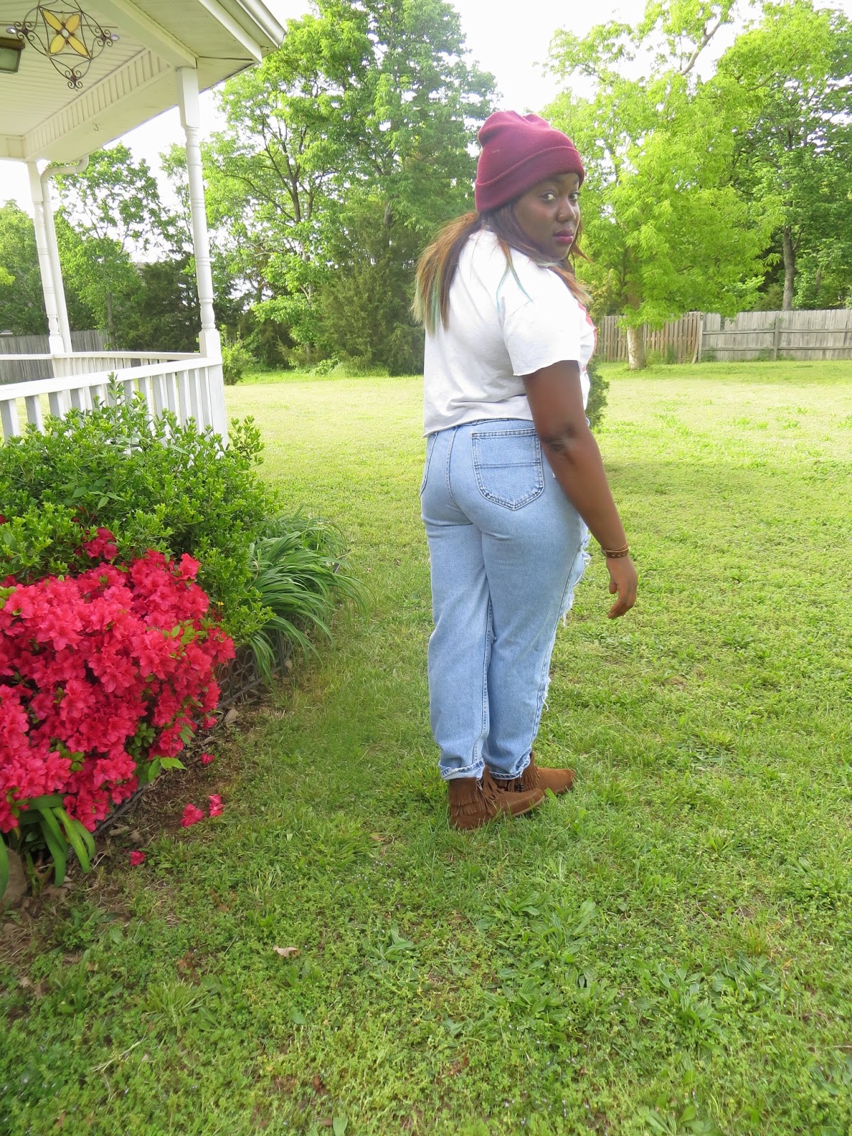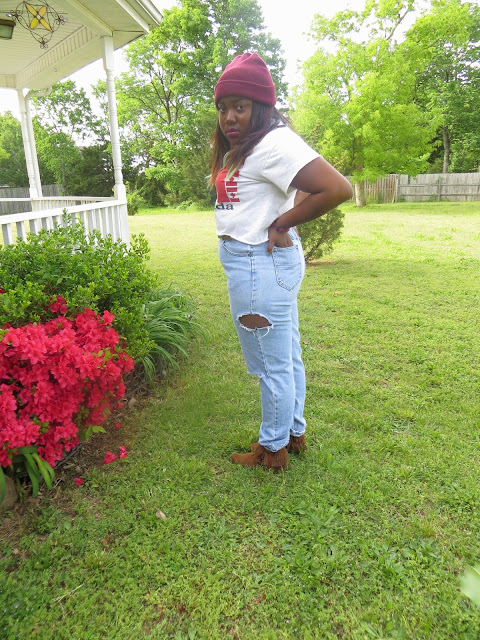 Wooooo Hooooo for not having class today! Only Two more Exams before I can chuck the deuces to this semester. I decided to take the day to reorganize my closet today before I had to head to the ball field. I always seem to try on clothes while organizing my closet so today I ended up with this on. I am so in love with Mom Jeans for the spring and with this rip I made along the seam of these jeans. I am sure it will be featured in a lot of my upcoming DIY projects. I don't know what it is about the Month of May , other than MY BIRTHDAY!!!, that makes everything just feel right in my world. Any who I felt cool, casual and like myself today and it showed. I am gonna be oh so sad when it's too hot to wear beanies because they seriously complete my outfits perfectly.